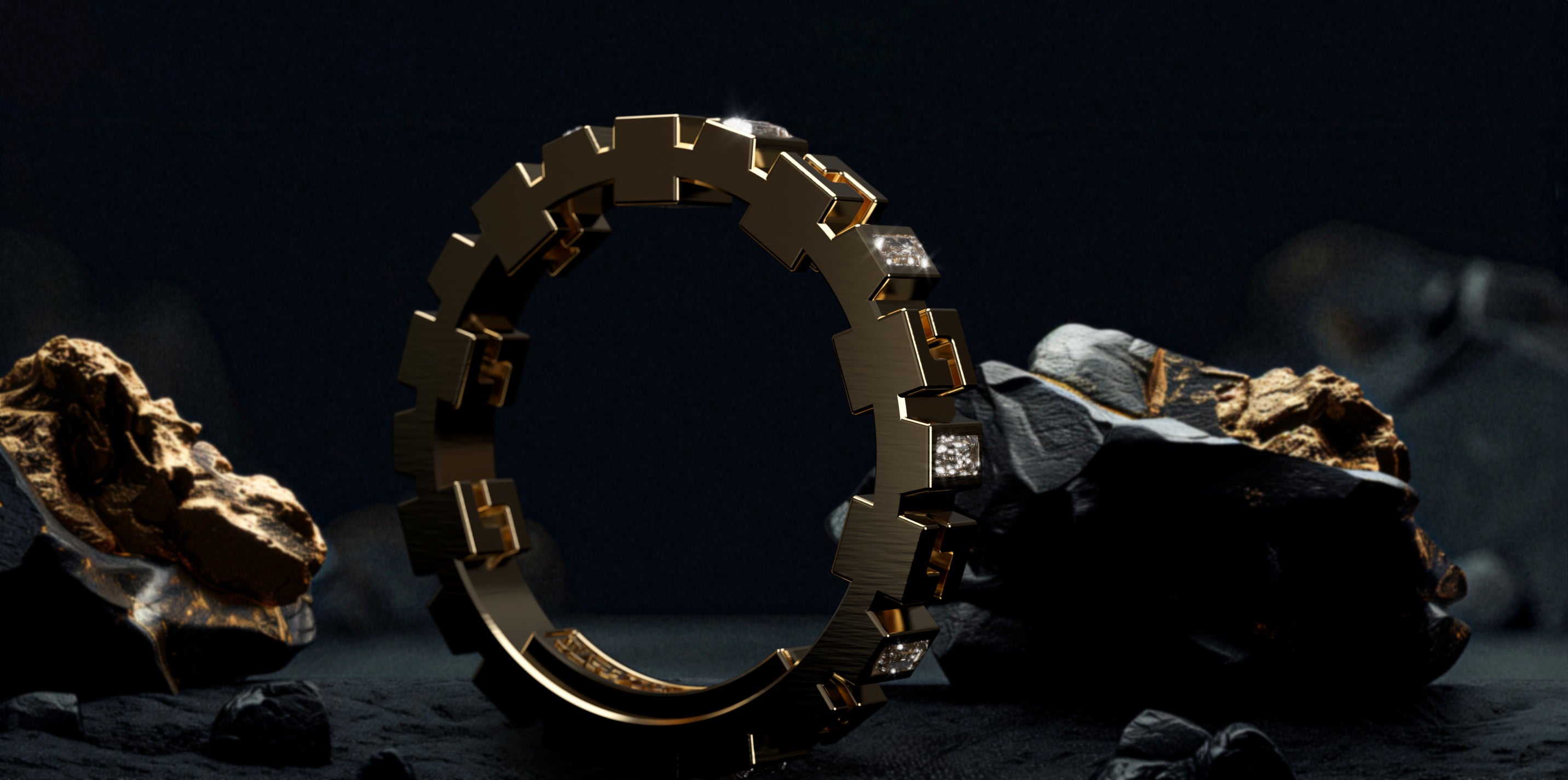 The Augustus Sumerian Starshine ring captures the breathtaking spectacle of the night sky.